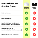 Drinking filters focus on taste. The HavenSkin Facial Filter focuses on Derma-Protection. We specifically target the contaminants that cause acne and irritation: Chlorine, Rust, and Micro-Sediments. Plus, our filter is transparent, so you can actually see the "liquid dirt" being removed in real-time.