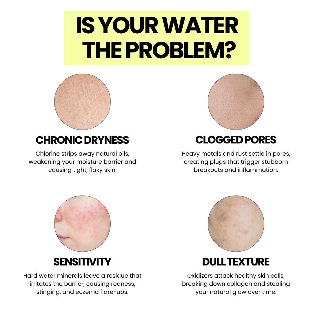 Hard water minerals form a "film" on your skin that prevents your expensive moisturizers from absorbing. It locks dirt in and keeps hydration out.